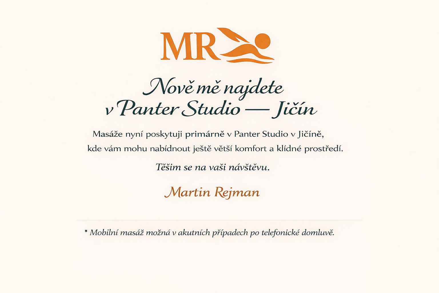 Masér v Panter studio Jičín, v akutních případech mobilní masér :)